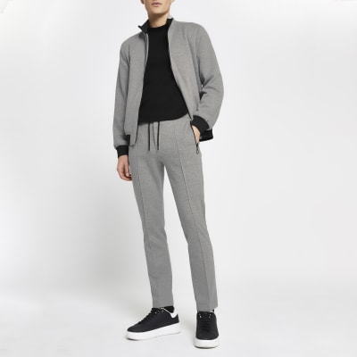 Grey Skinny Fit Zip Joggers River Island