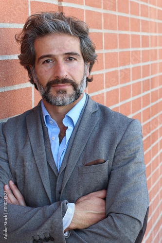 Portrait Of Middle Aged Modern Business Man With Salt And Pepper Hair Alone With Copy Space Stock Foto Adobe Stock