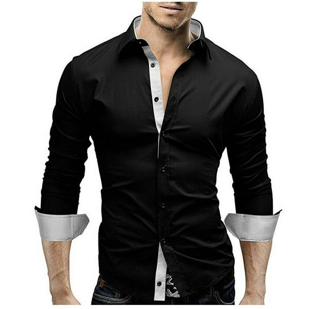 Lookwoild Lookwoild Mens Casual Shirts Business Dress T Shirt Long Sleeve Slim Fit Tops Walmart Com Walmart Com